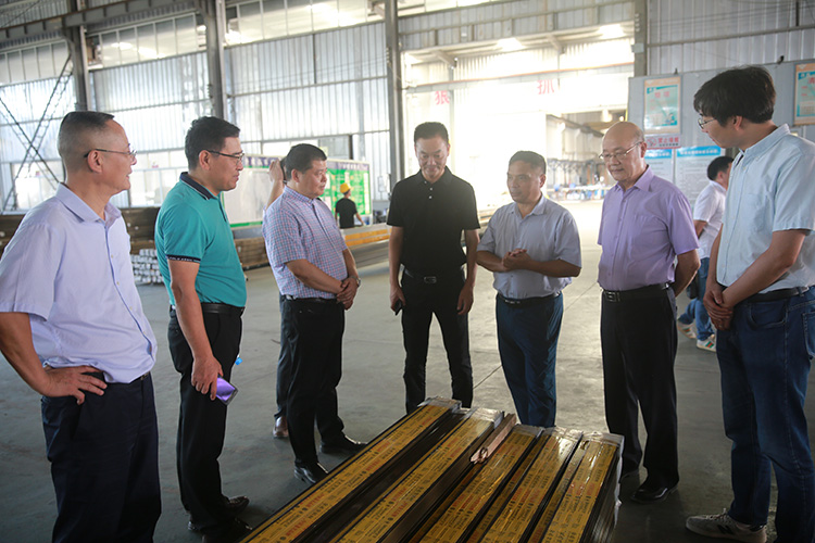 In the morning, leaders and experts of Shanghai Aluminum Association, accompanied by Chairman Peng Baotai of Baotai Group, visited the phosphorus copper ball workshop, vertical spraying workshop, aluminum profile workshop, aluminum alloy ingot workshop, intelligent doors and Windows exhibition hall, copper bar workshop. During the visit, Chairman Peng Baotai introduced the production situation and production process of each workshop in detail.